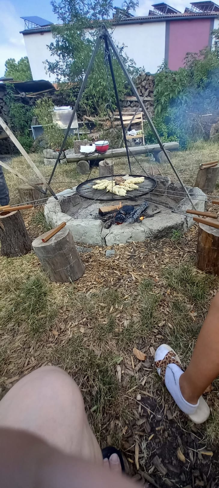 Lagerfeuer mit Stockbrot und Würstchen
