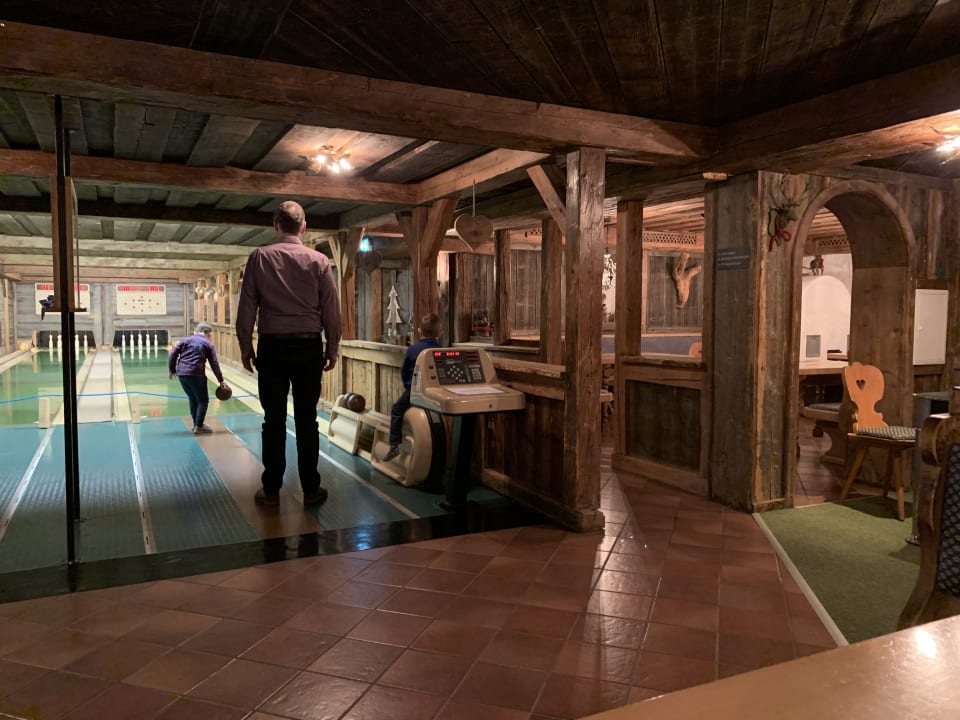 Die tolle Kegelbahn, rechts Billardtisch, Tischfußball etc
