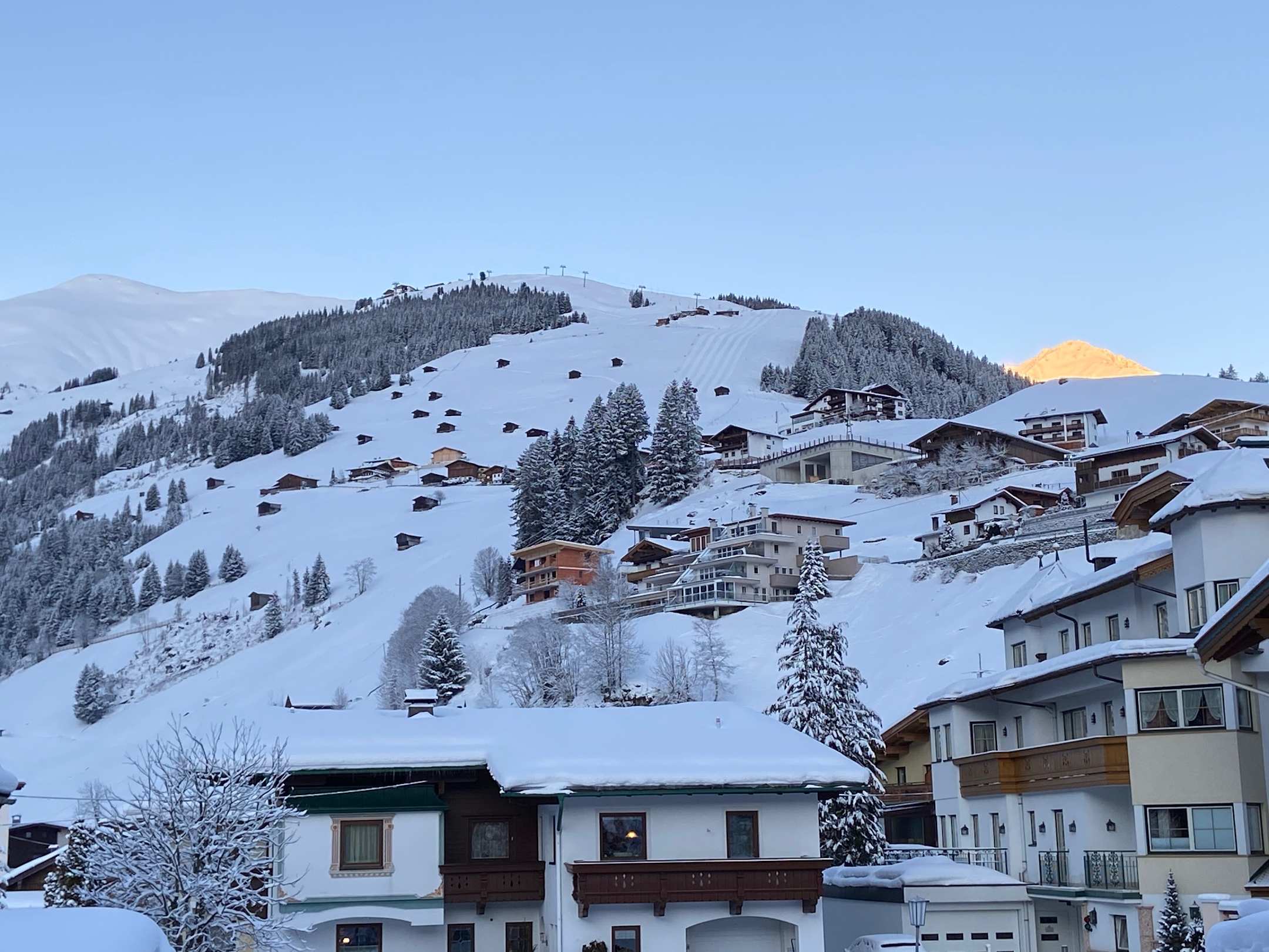 Blick aus dem Zimmer auf das Skigebiet
