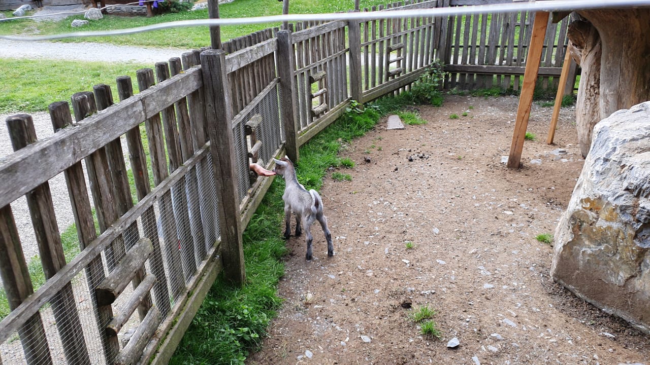 Ziegen suf dem Spielplatz gegenüber vom Hotel