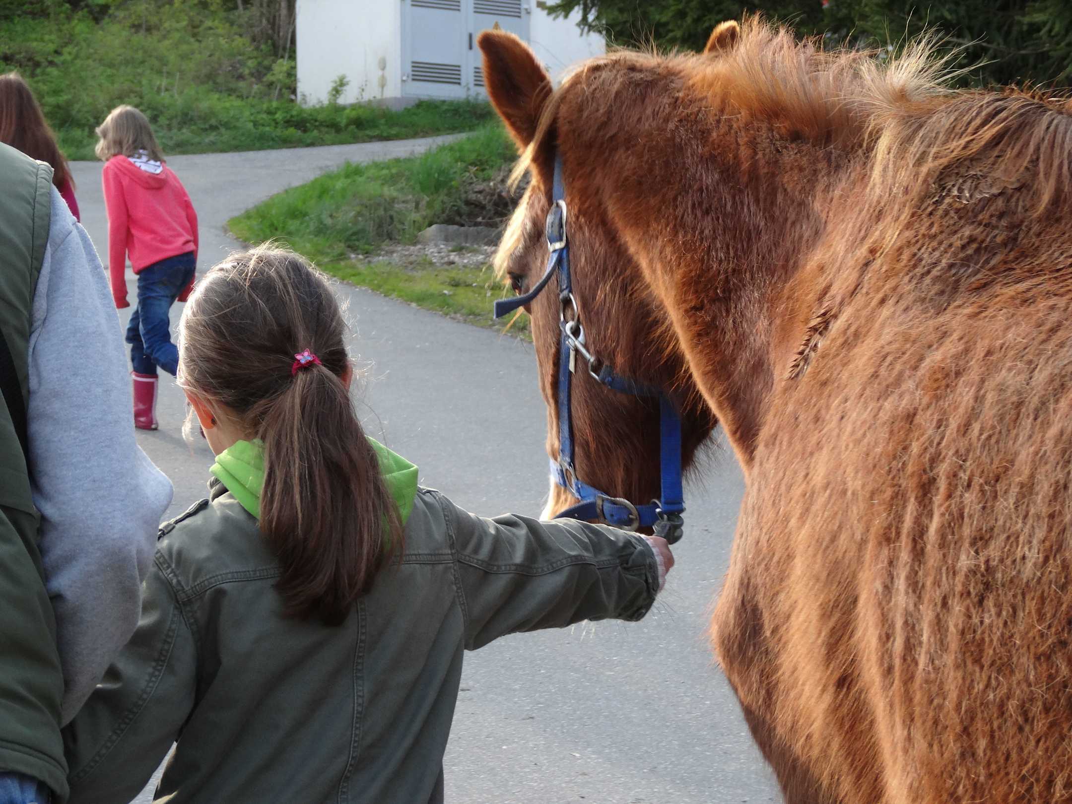 Führen der Pferde auf die Koppel
