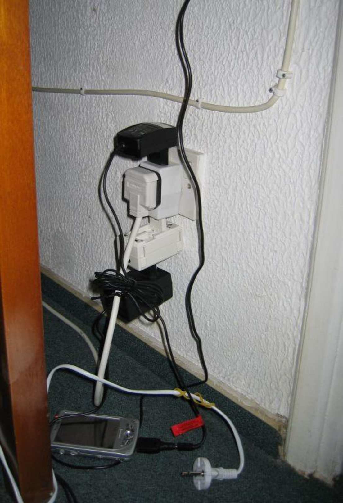 zu wenig Steckdosen machen kreativFön, Fernseher, Kühlschrank und diverse Ladegeräte... Adapter im nahegelegenen Supermarkt erstanden ;)