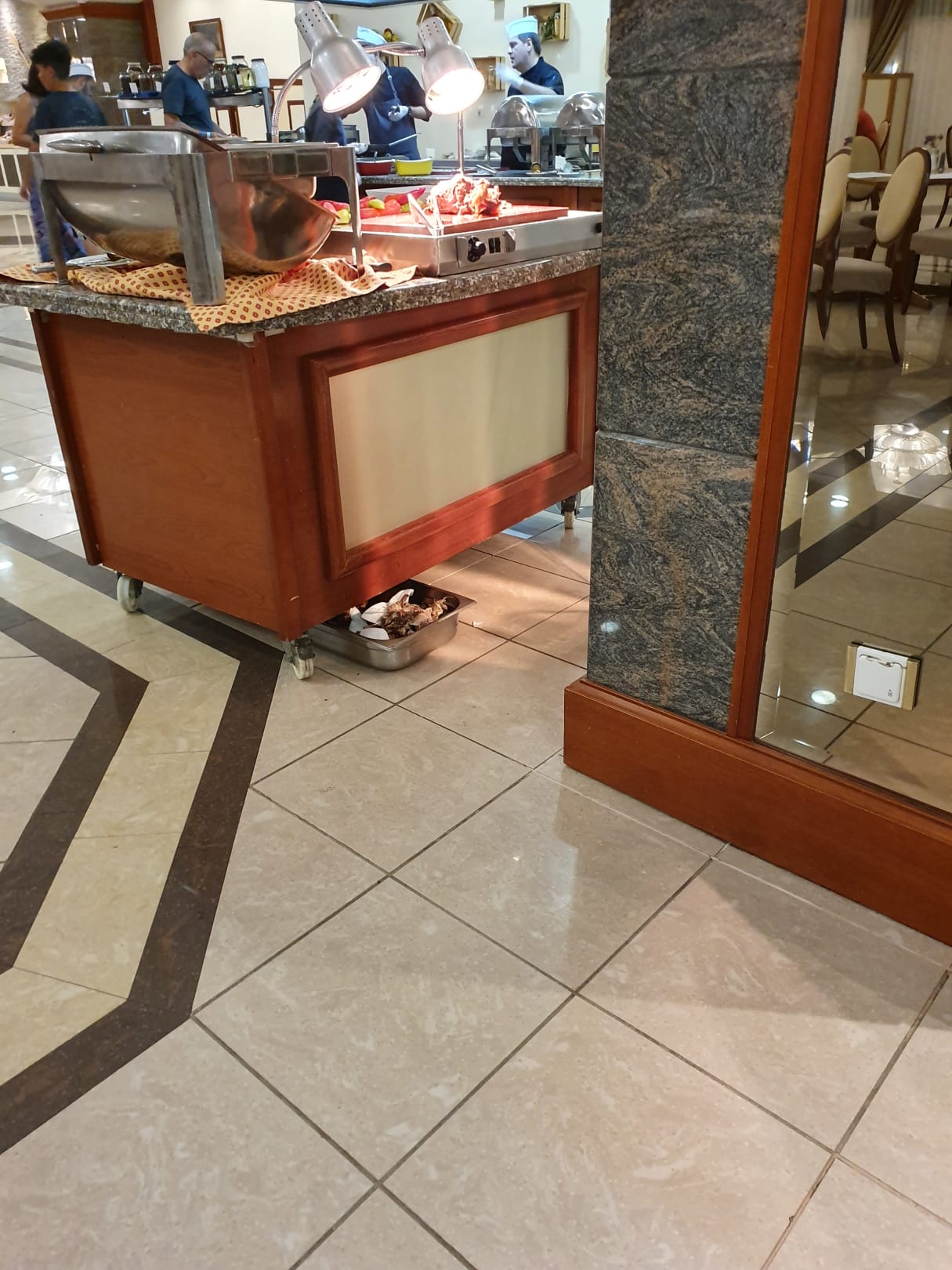 Knochenreste vom Braten werden am Boden in einer Auffangschale gelagert!