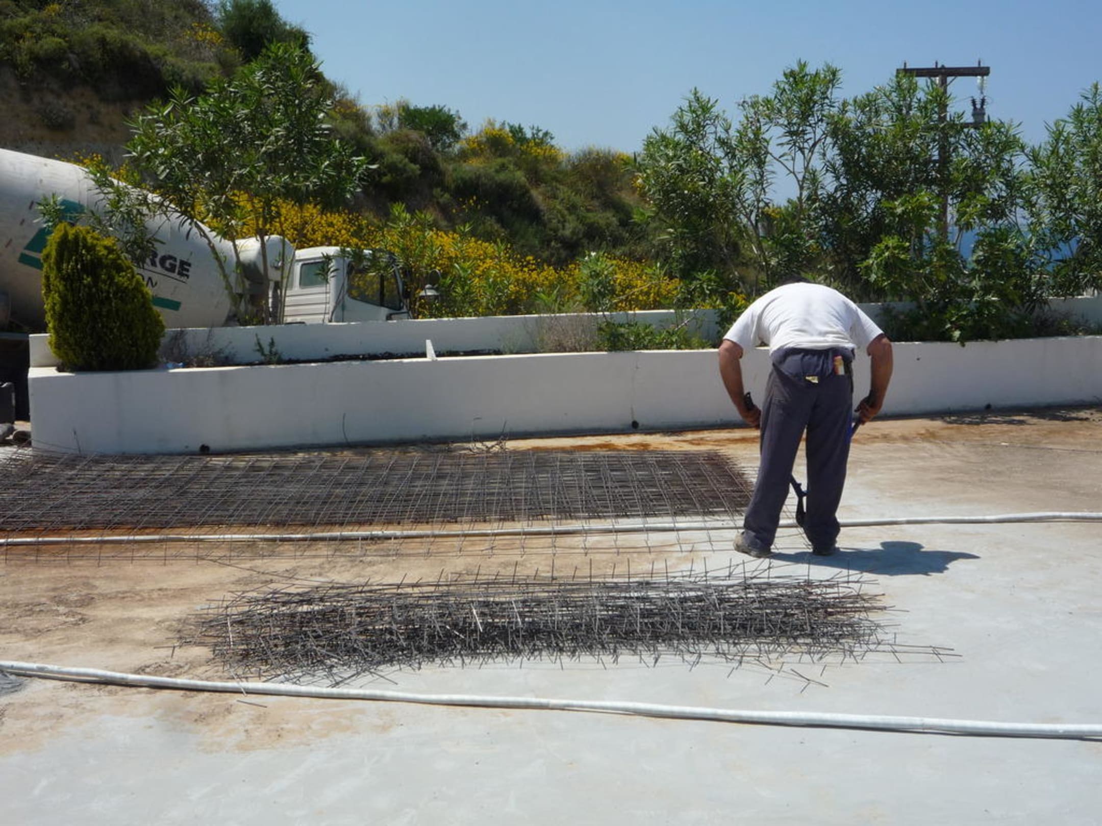 In der Gartenanlage wird Stahl geschnitten