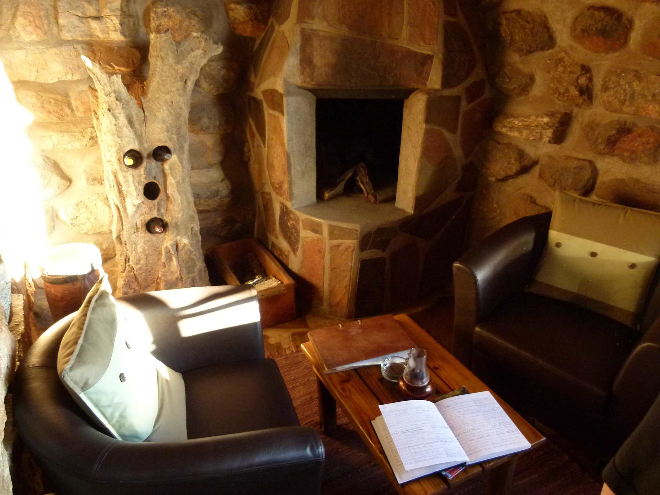 Kamin und Sitzgelegenheit