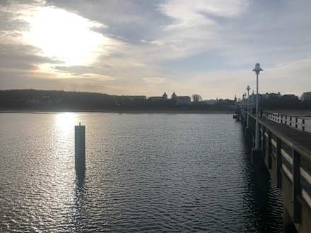 Blick von der Seebrücke aufs Hotel