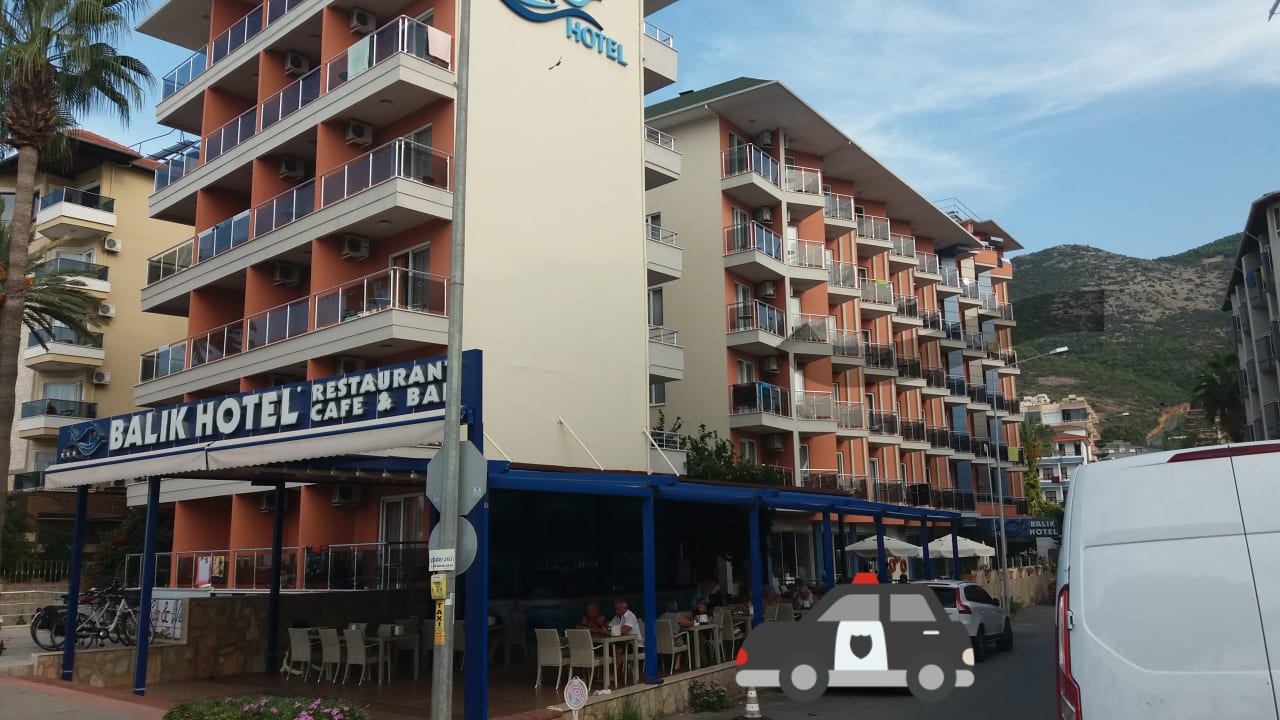 Wo Balik Hotel steht, sind die die Zimmer mit Meerblick. Trotz gebuchtem Meerblick bekam ich das Zimmer auf der Seite, in der 5. Etage über dem Eingang des Hotels.