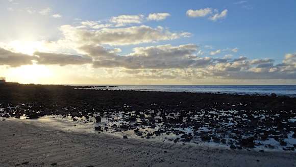 Der Strand direkt am Hotel, morgens bei Ebbe.