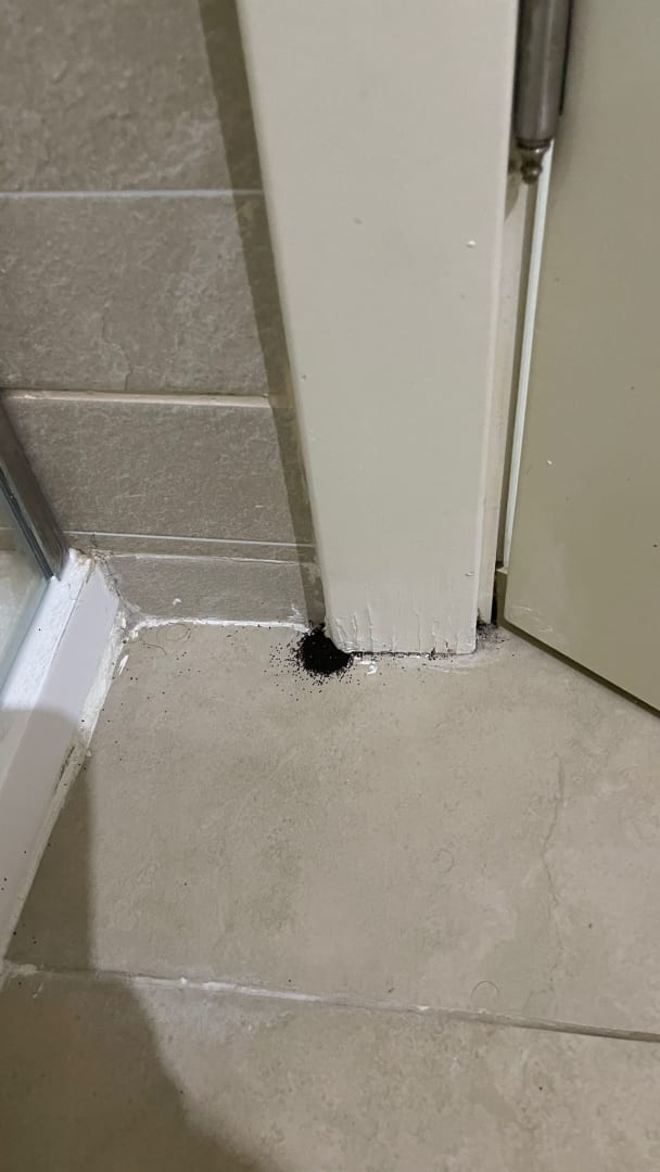Holzmehl am inneren Türstock der Badezimmertür