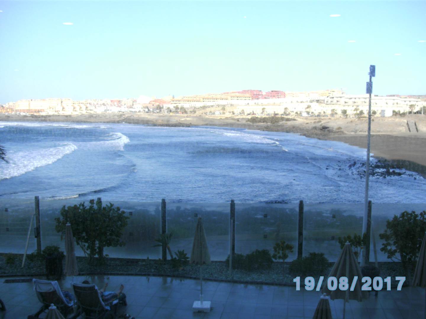 AusblickBlick von der Kaffe / Bar Terasse auf den Pool / Strand und nein es hat nicht geregnet, die Liegeflächen werden jeden morgen gereinigt