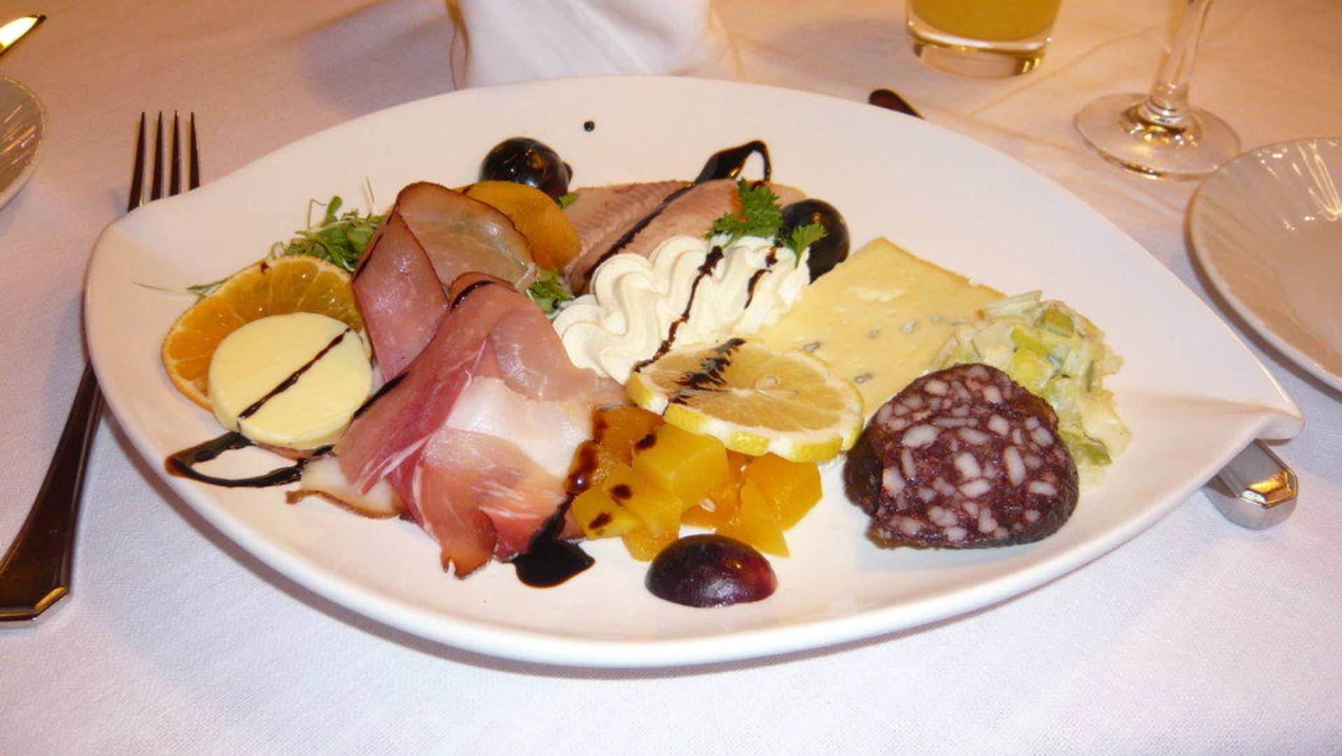 Ein leckeres Drei-Gänge-Menü. Hier der zweite Gang ein bayerischer Teller.