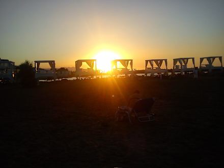 Sunset through beach Sunbeds