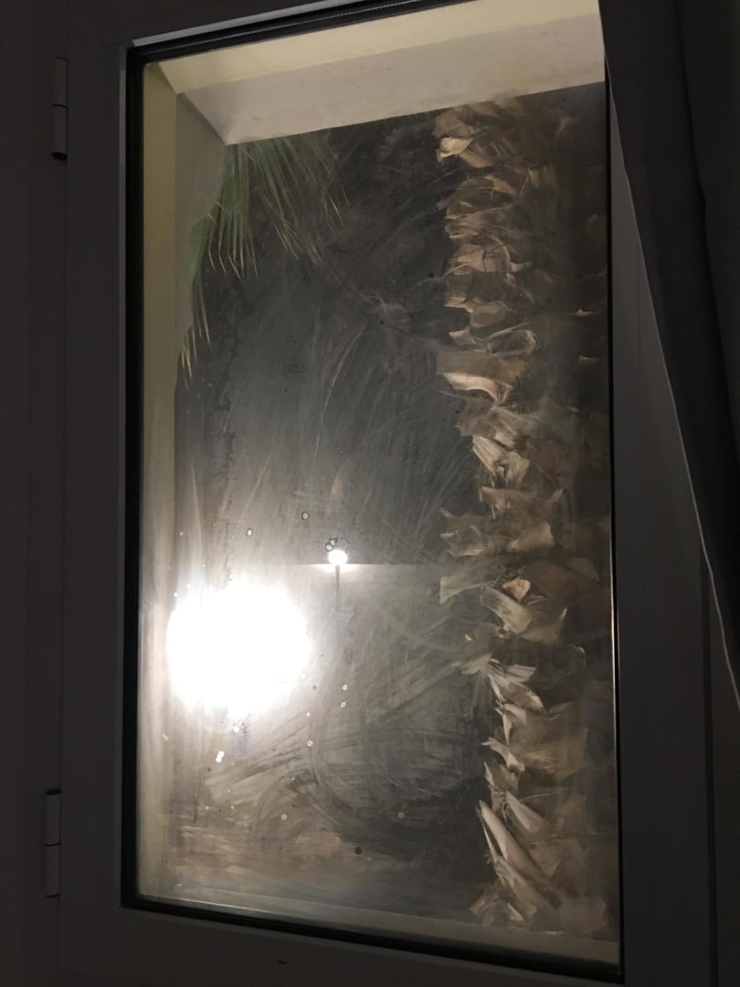 ZimmerAnnex Zimmer Erdgeschoss, Zimmer zur Straße ohne Verdunklungsvorhang und Laterne davor inklusive. Wie man sieht auch sehr sauber.