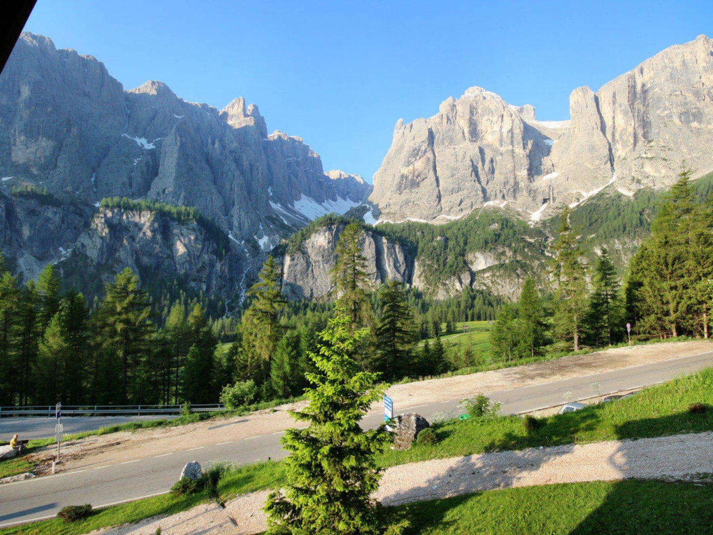 Grödnerpassstraße mit Blick in das Mittagstal