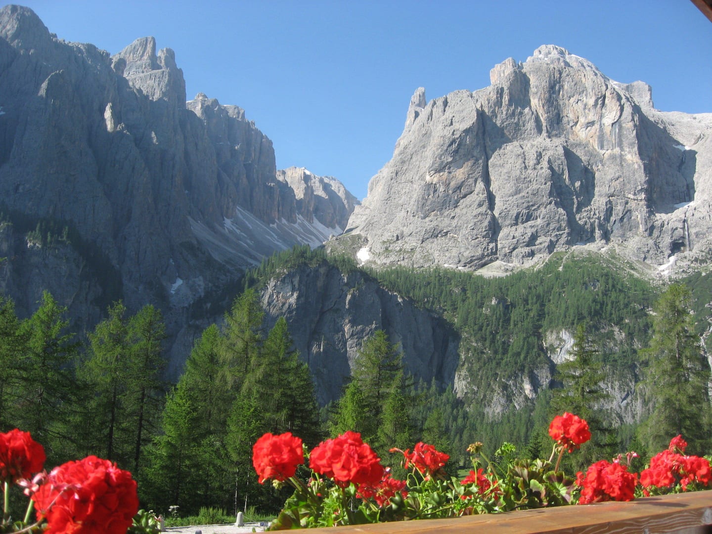 Blick vom Zimmer 228 direkt auf den Sellastock und das Mittagstal