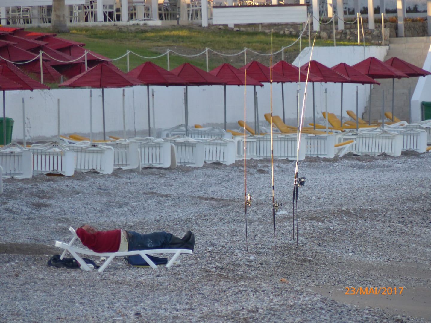 Strandliegen aufstellen ist anstrengend, deshalb erstmal eine kleine Pause...