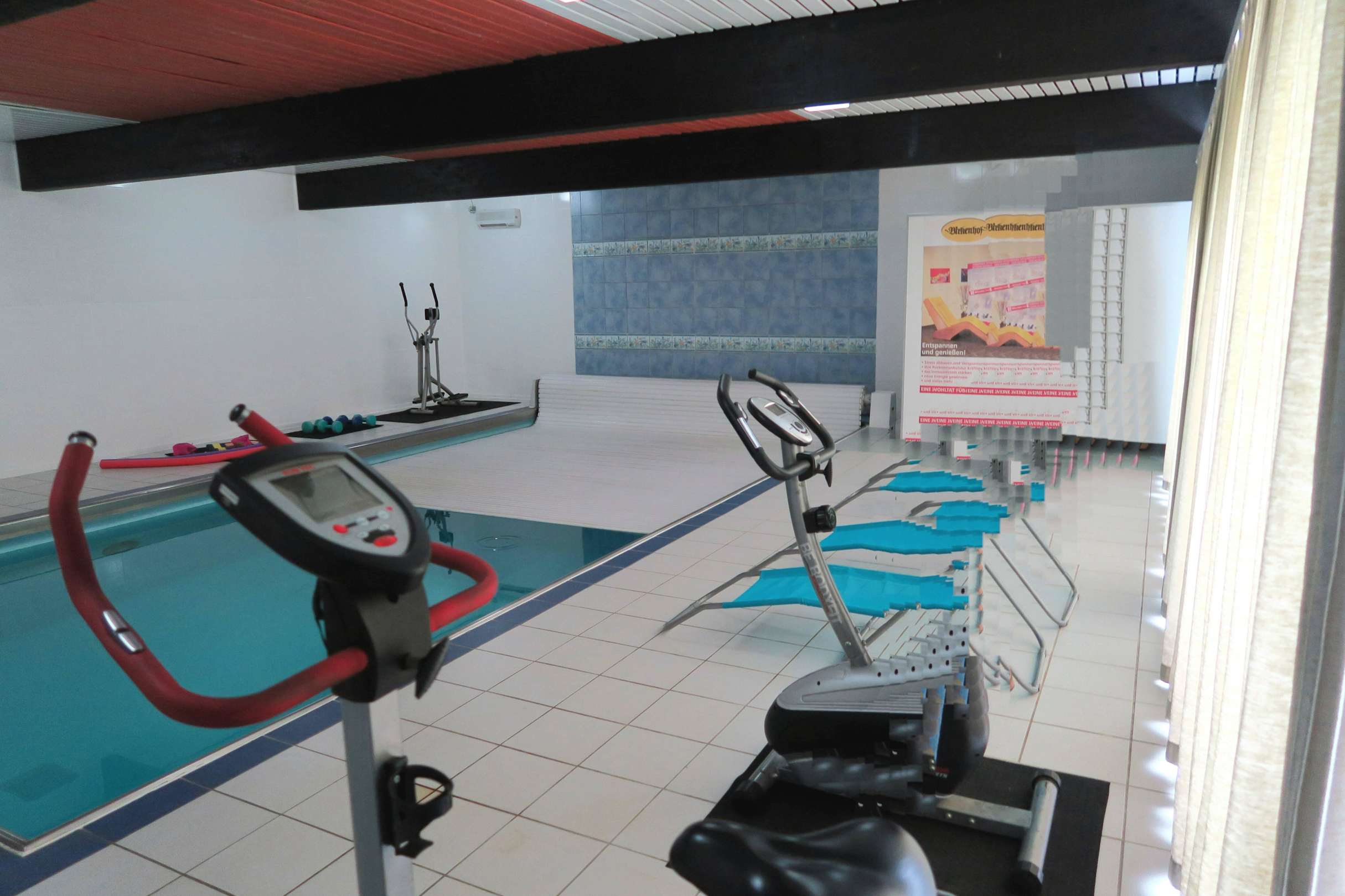 Hallenbad mit Sauna und Fitnessgeräten