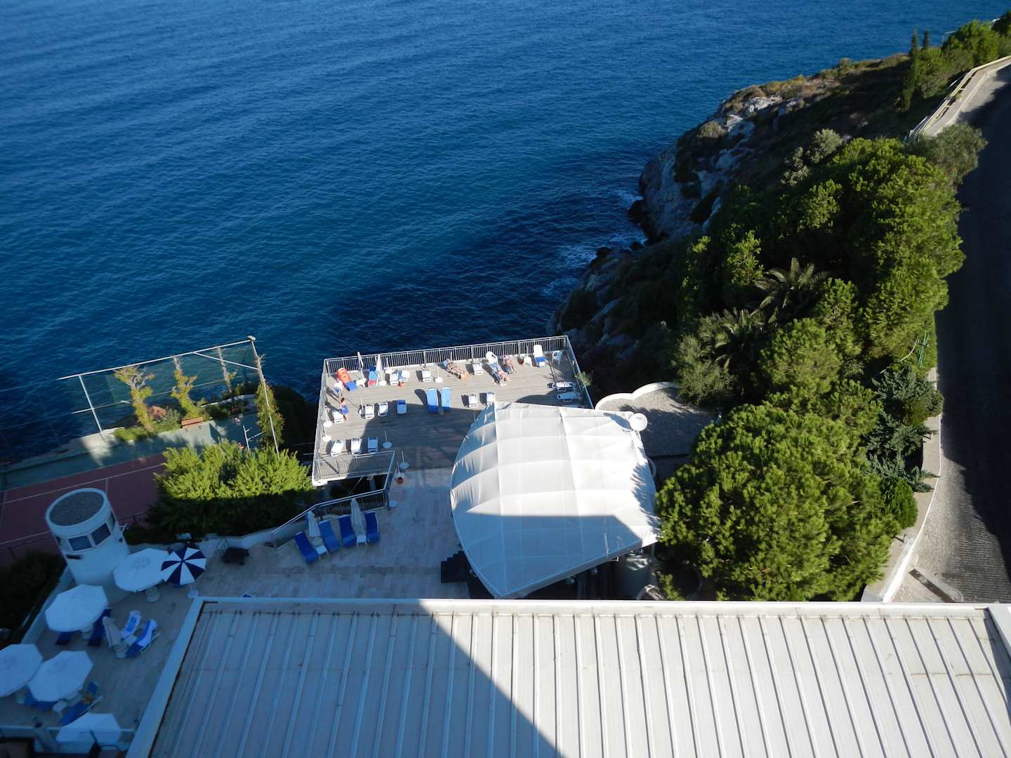 Blick auf Sonnenterrasse beim Pool
