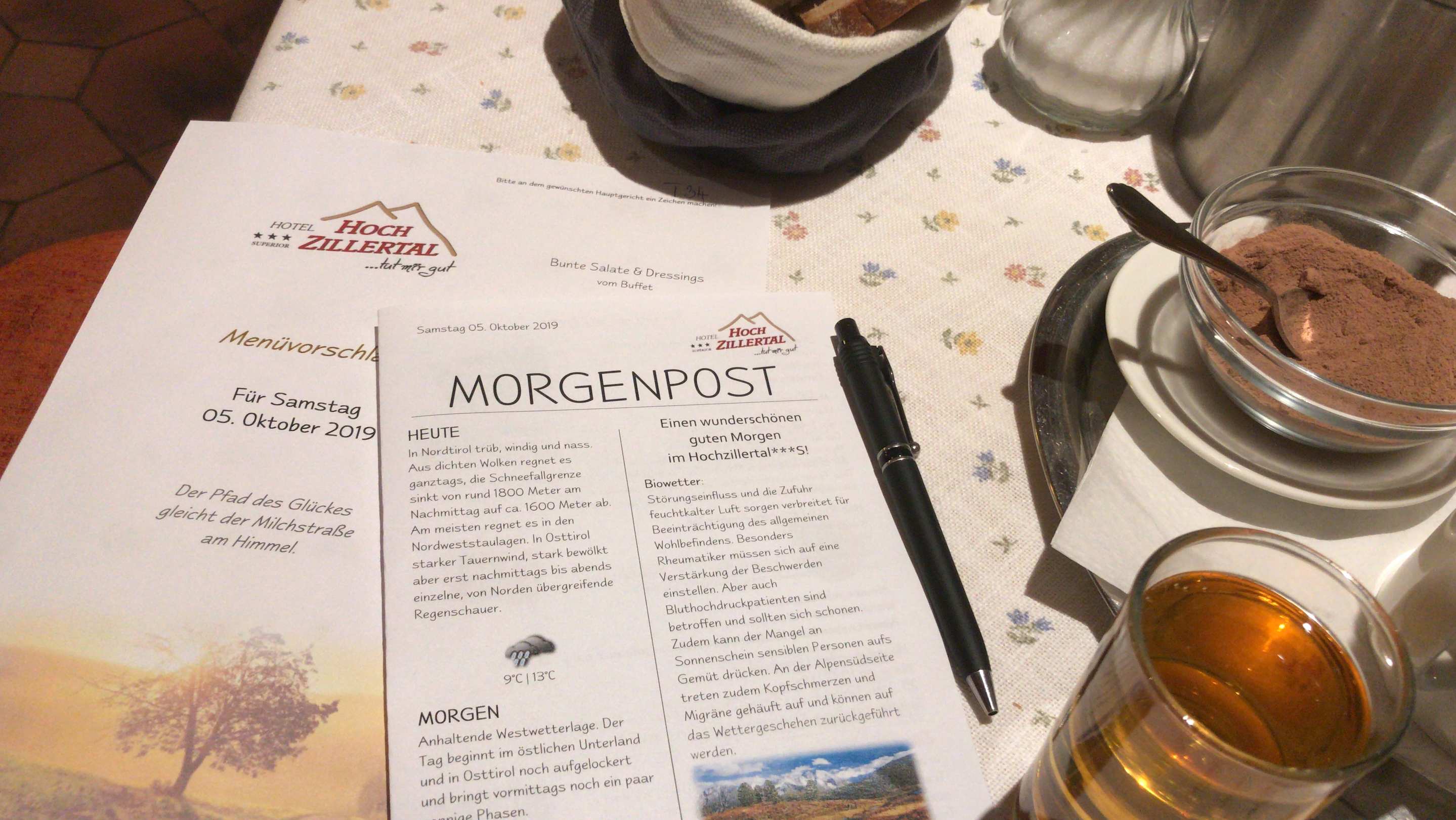 Jeden Morgen gab es Post mit Infos zum Wetter, Veranstaltungen, Lebensweisheit, usw.