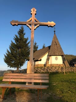 Die Kapelle vor der Alm mit Aussicht ins Tal