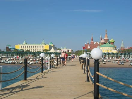 Herrlicher Blick vom Strand mit Disco (rechts), Wohnkomplex (links) und Basilica.