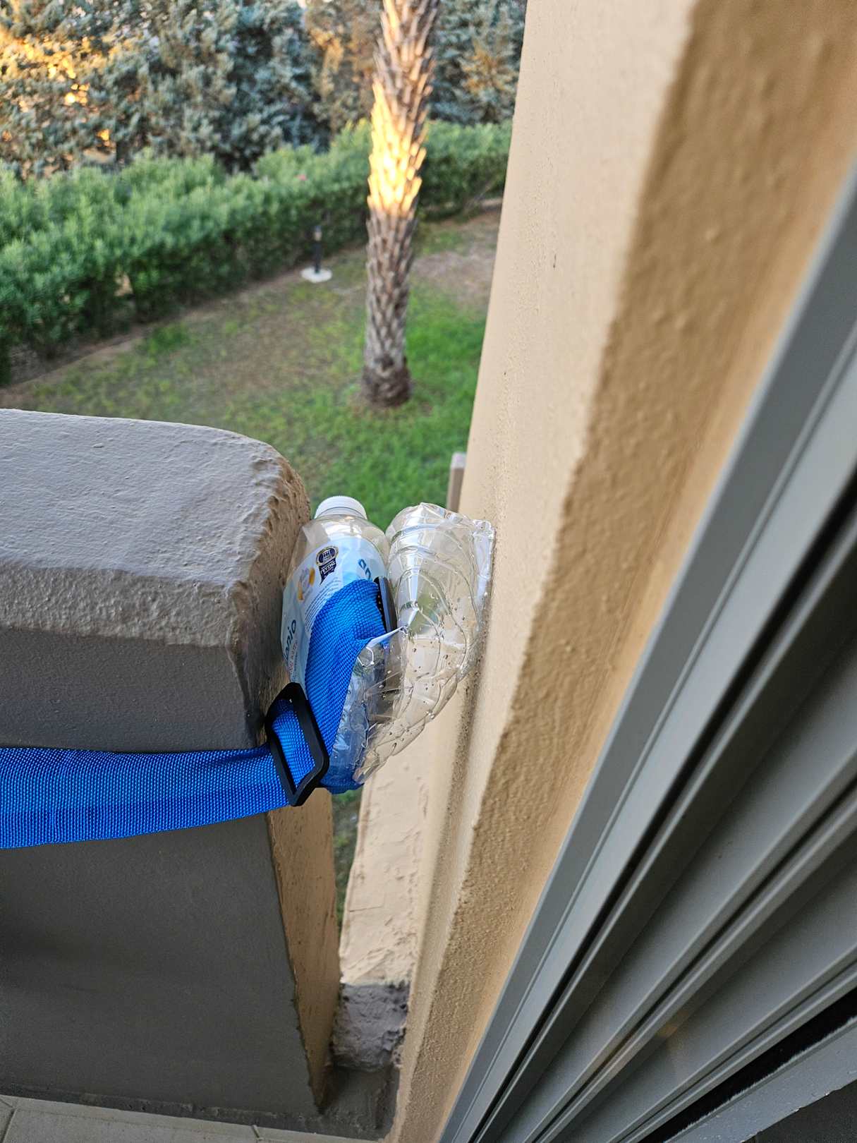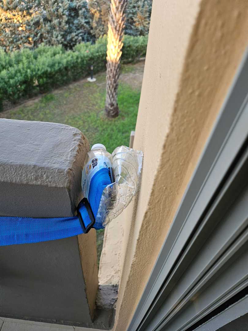 Trick: Fixpunkt zum Trocknen mit einer leeren Flasche und einem Kofferriemen