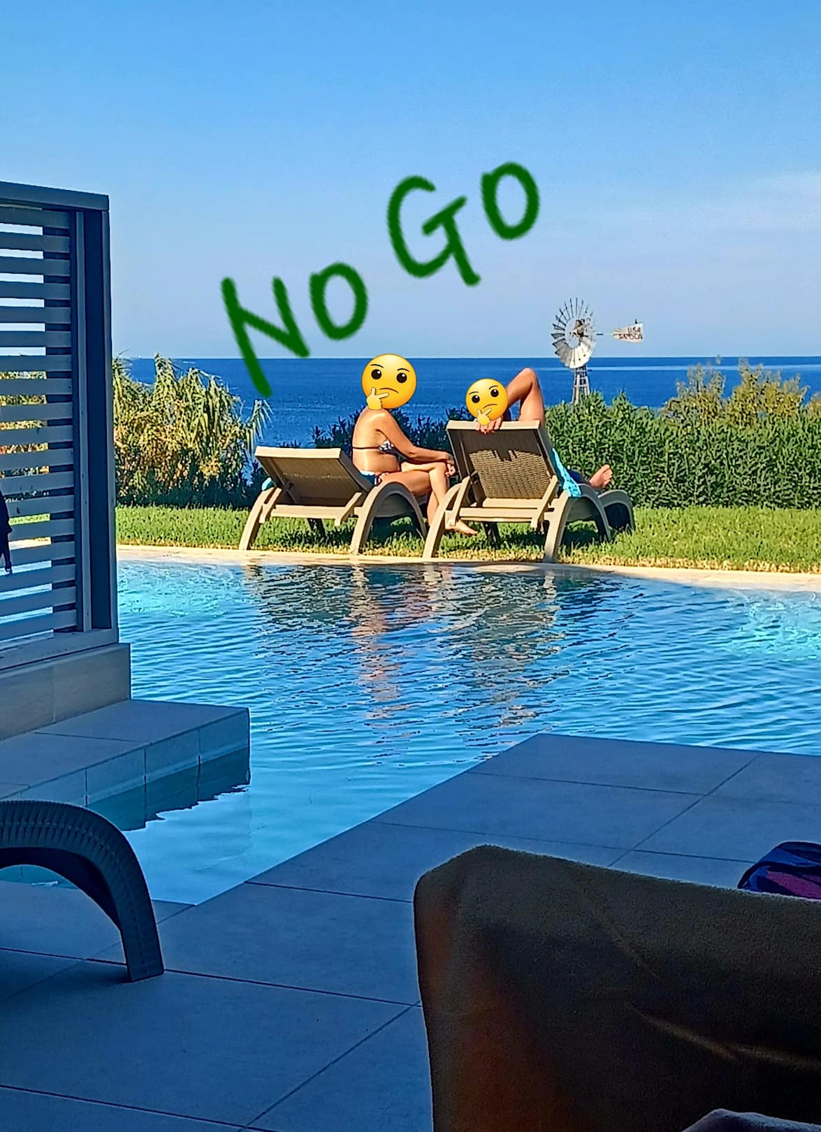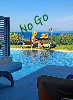 Gäste sollen die Liegen nicht entwenden dürfen andere Gäste bezahlen hier Meerblick