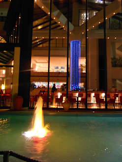 Hotel-Bar bei Nacht, von der Terrasse aus