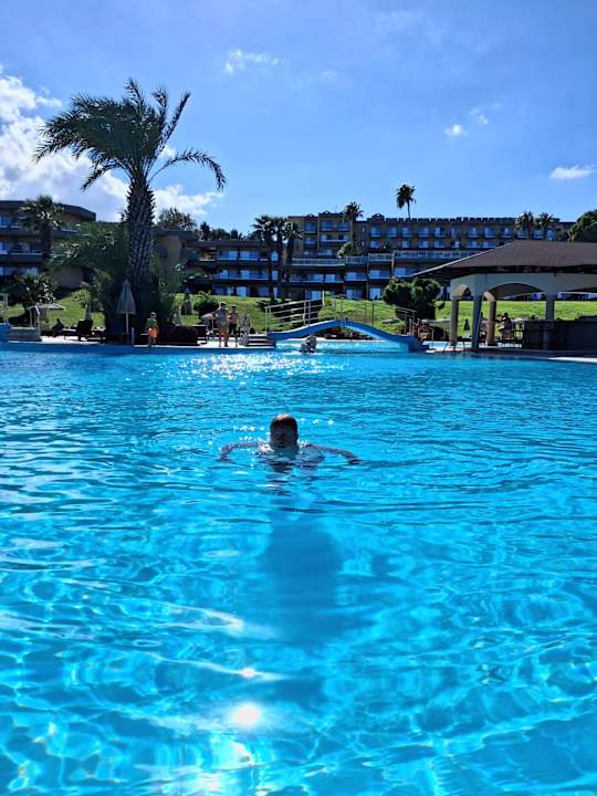 Schwimmerbecken, im Hintergrund Hotel. Rechts die Poolbar