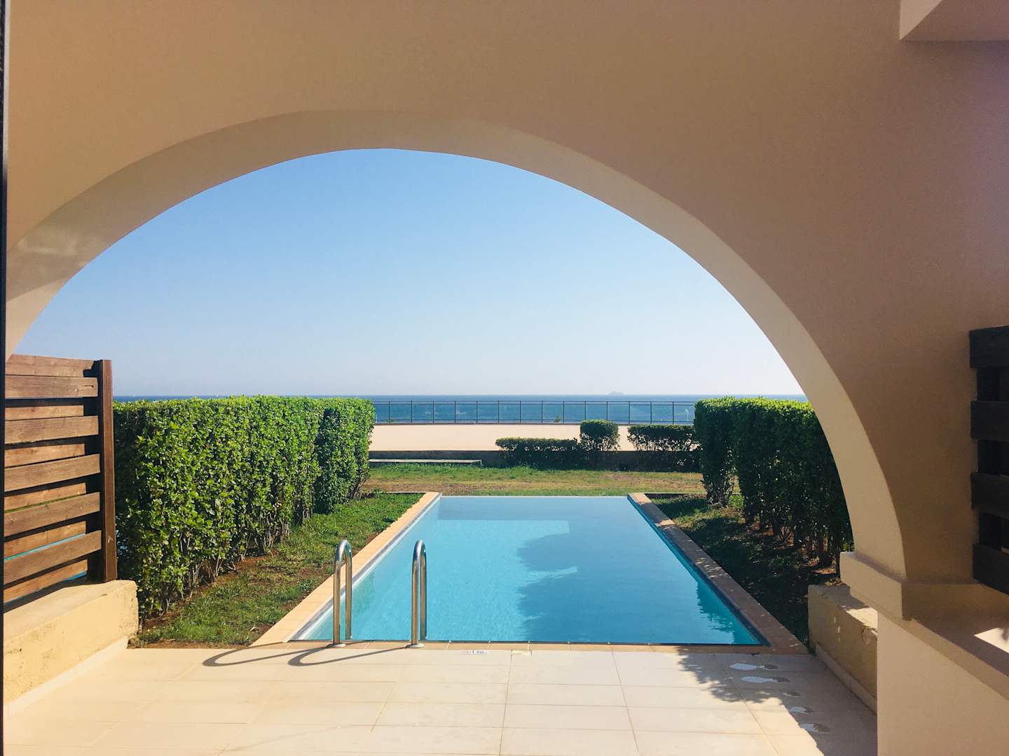 Aussicht auf unseren privaten Pool und das Meer