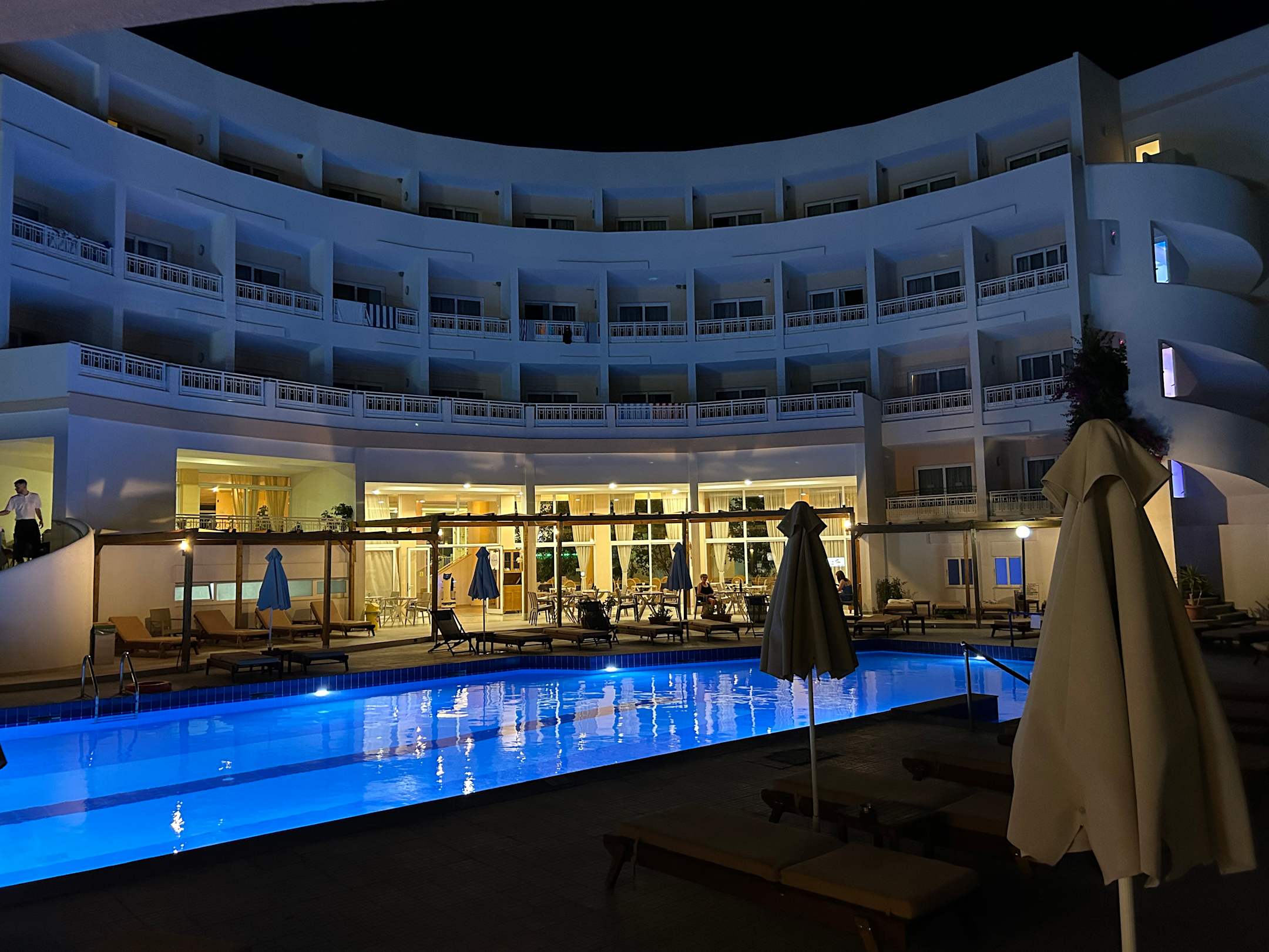Pool und Hotel bei Nacht