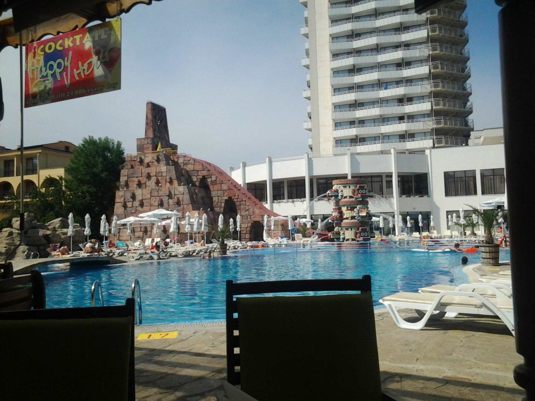 Nice pool and waterslides.
