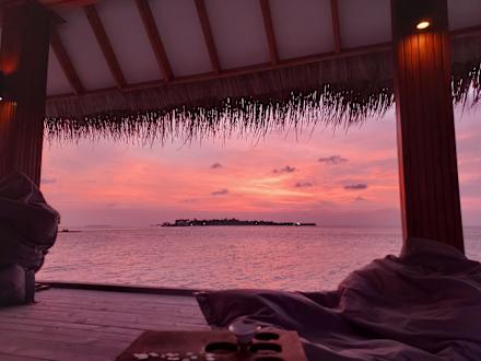 Abendstimmung in der Sunset Lounge (sehr bequeme Sitzsäcke!) des Sea Edge Restaurants