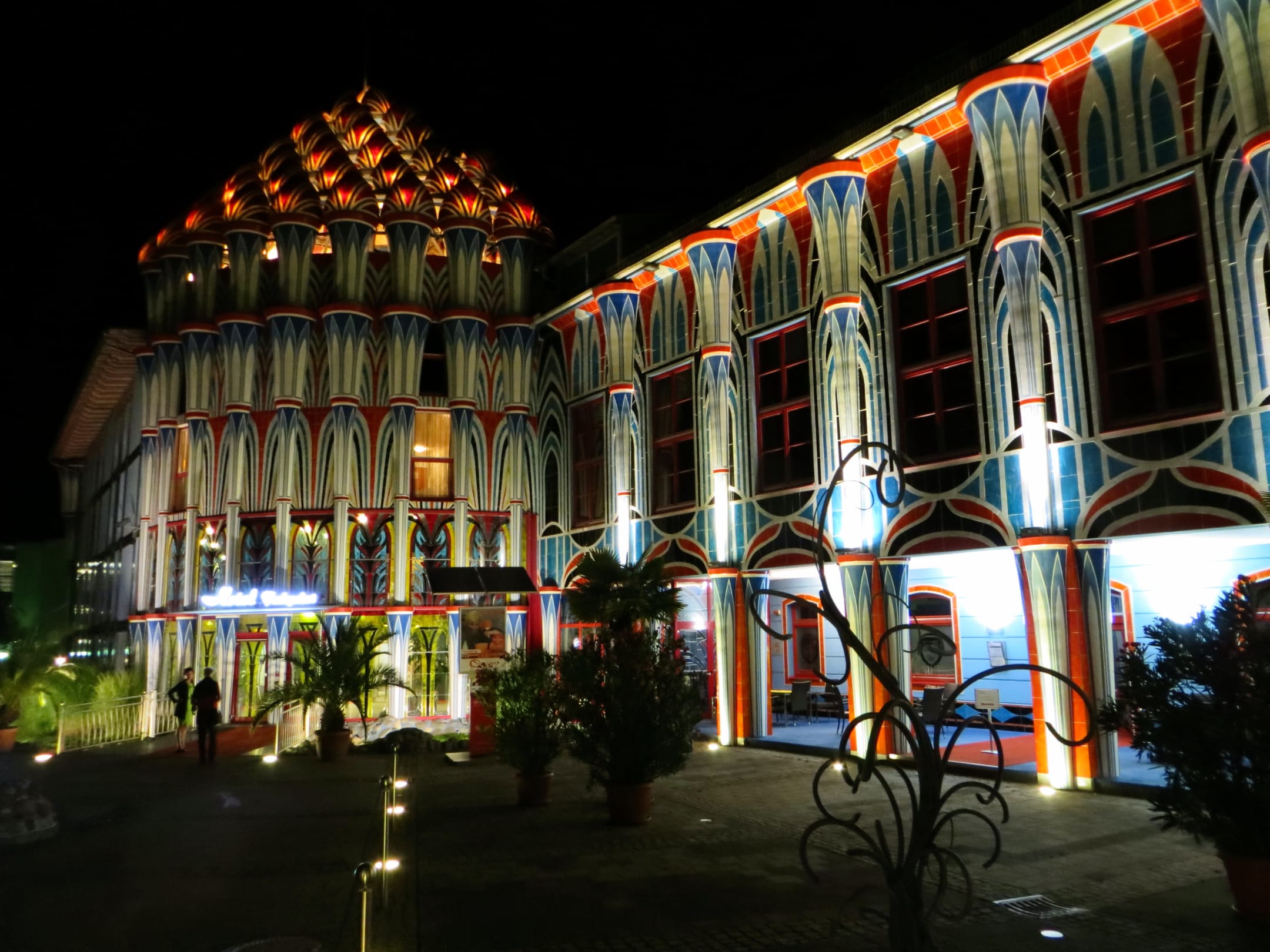 Frontansicht mit Eingang bei Nacht