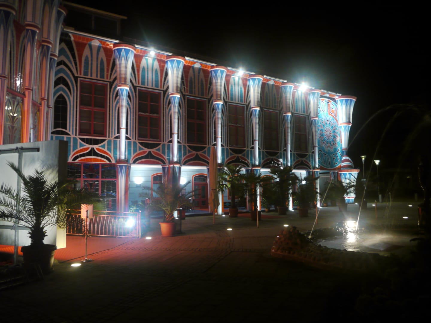 Nachtaufnahme des Hotelgebäudes