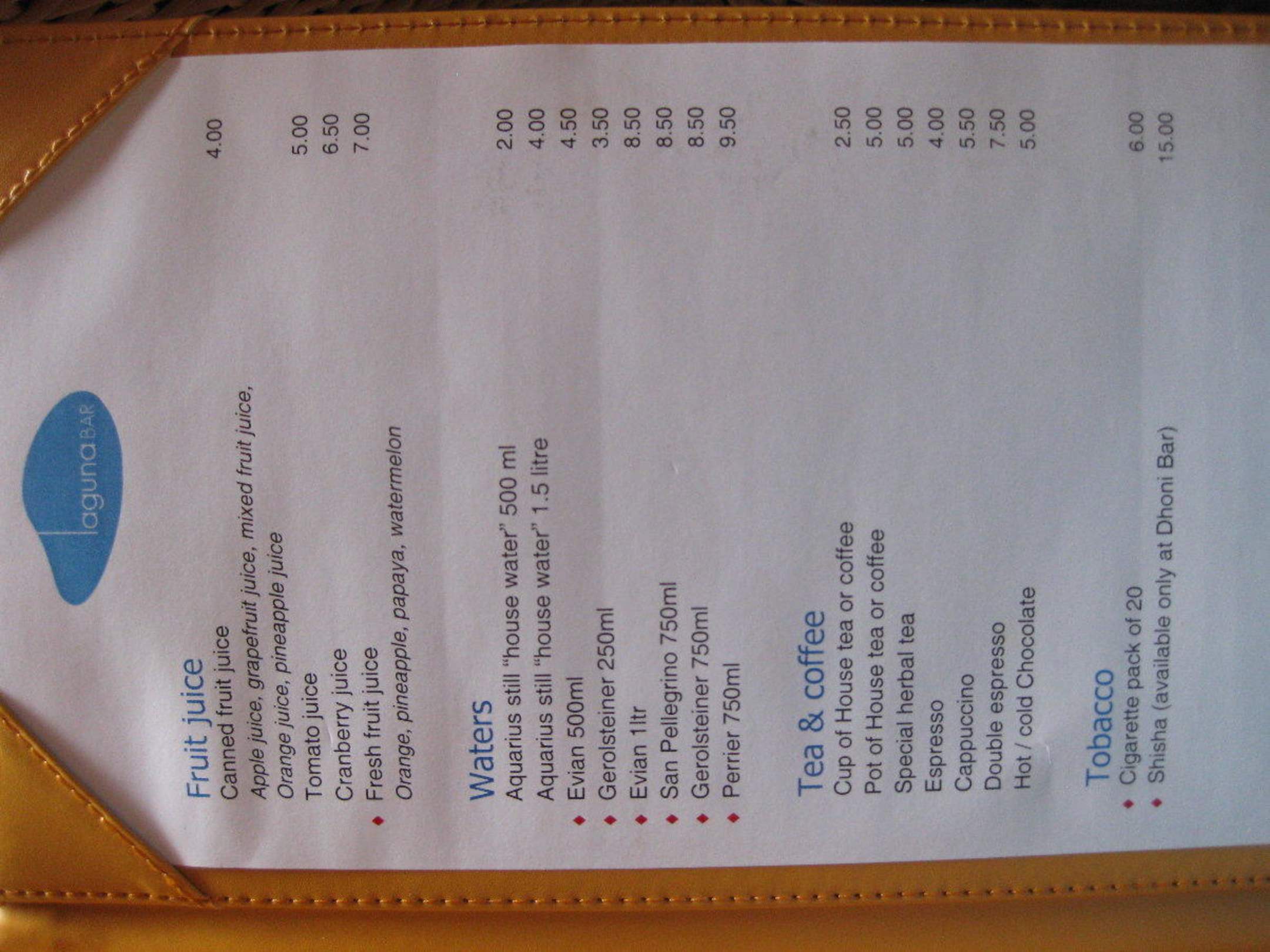 Getränkekarte - Bar Kuramathi Maldives