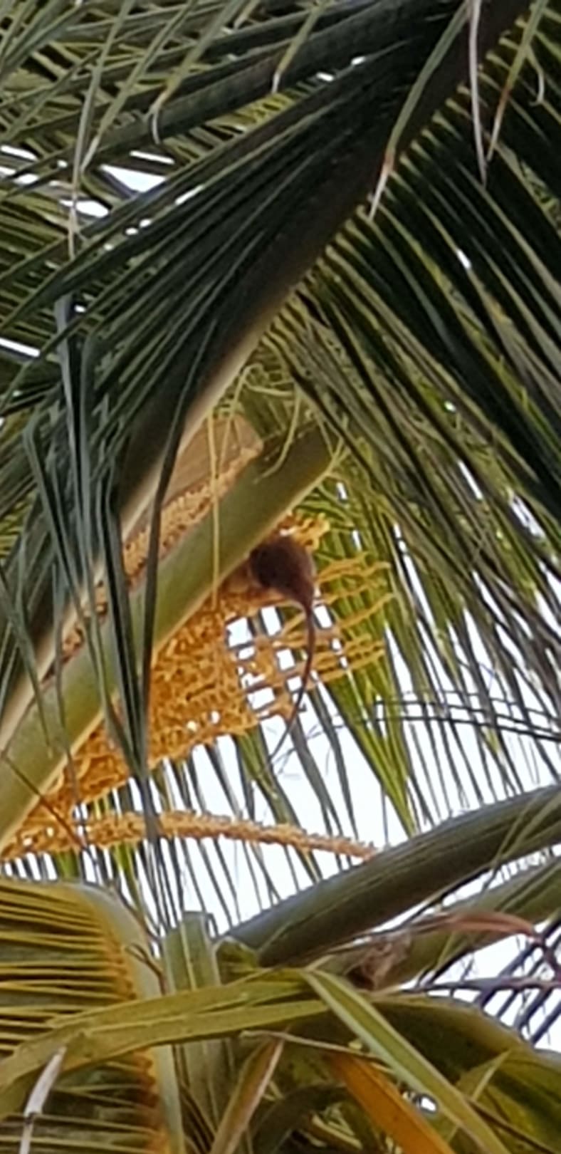 Das "Palmhörnchen" in der Palme vor der Villa 318. Man beachte den langen Schwanz.