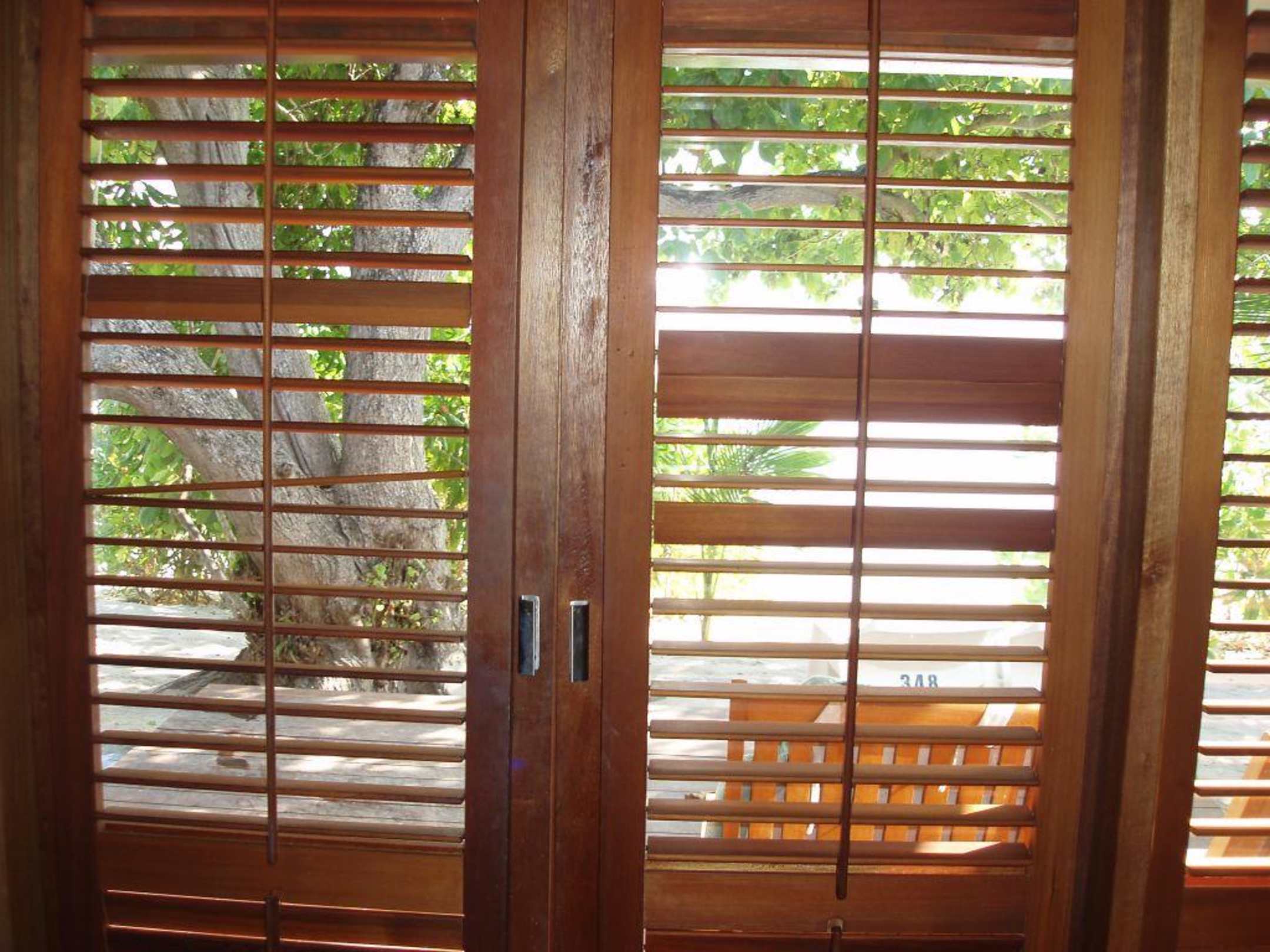 Fenster und Tür-Jalosie .Blick aus dem Zimmer