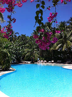 Dieser Pool ist weniger besucht und schattenspendend durch die Palmen
