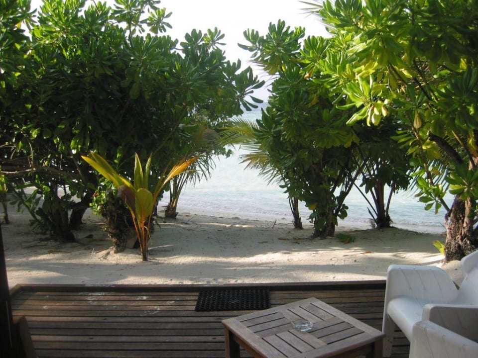 Blick von der Terrasse auf den Strand