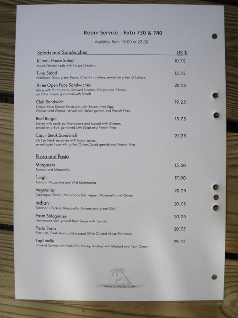 Room Service Preisliste Kuredu Island