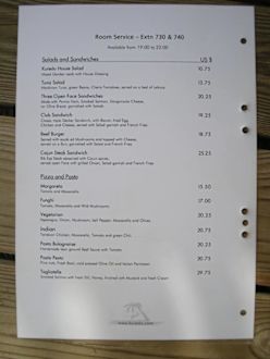 Preisliste Room Service auf Kuredu Island.