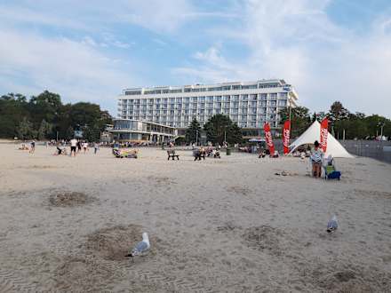 Blick auf das Hotel/Sanatorium vom Strand