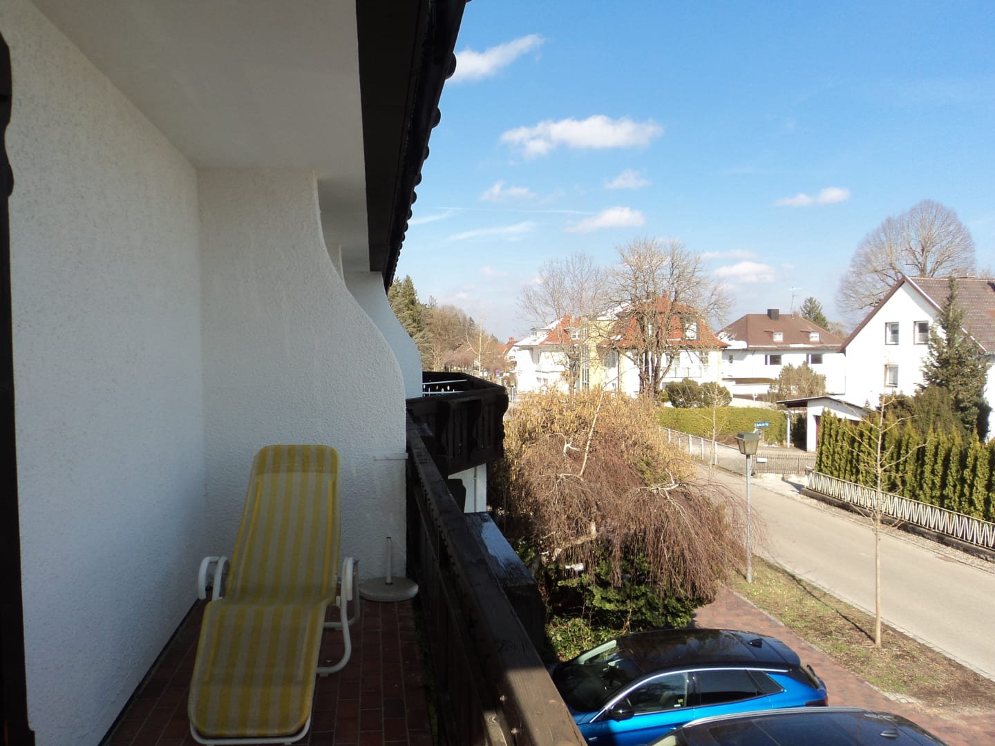 Ausblick vom Balkon auf die Straße Richtung Stadt