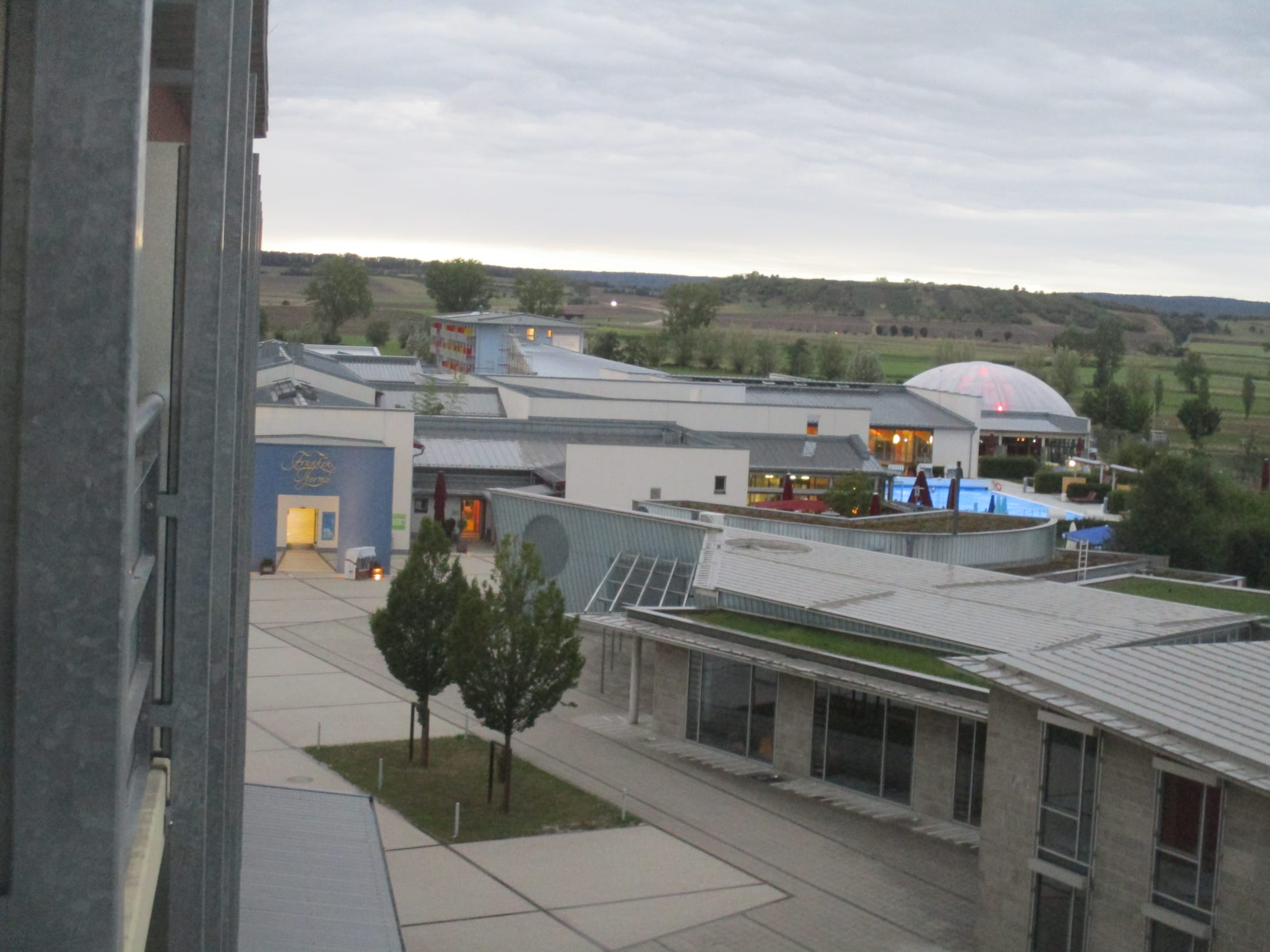 Blick vom Balkon zur Therme
