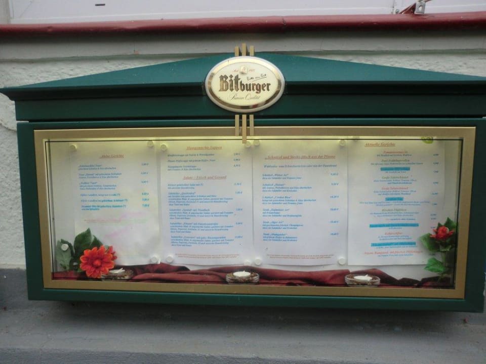 Speisekarte StandardDie Speisekarte aber von der ehemaligen Zeit ist leider nicht viel über geblieben.