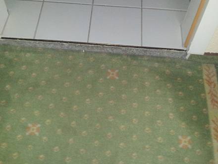 Übergang Zimmer zum BadStolperstelle. Keine Fußleiste oder Abschlussleiste. Blanker Beton sichtbar.