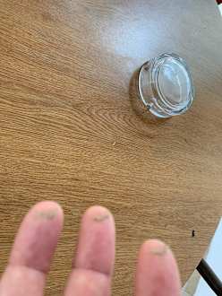 Tisch Dreck auf dem finger