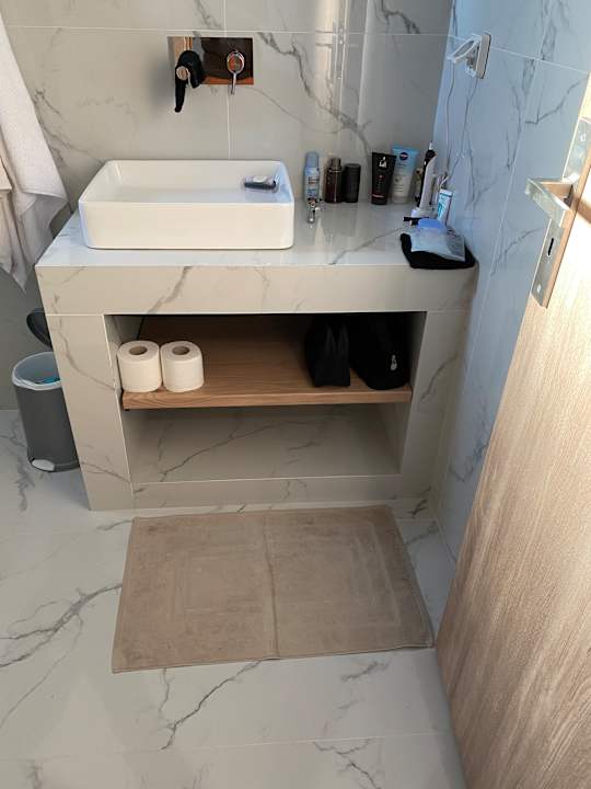Sie sehen die komplette Ablagefläche im Bad. Kein Zahnputzbecher - keine Regale.