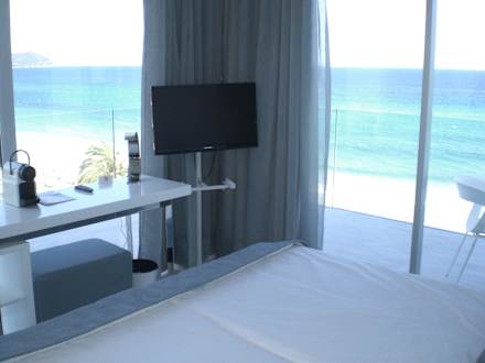 Blick vom Bett (Espresso-Maschine, Flachbild-TV)